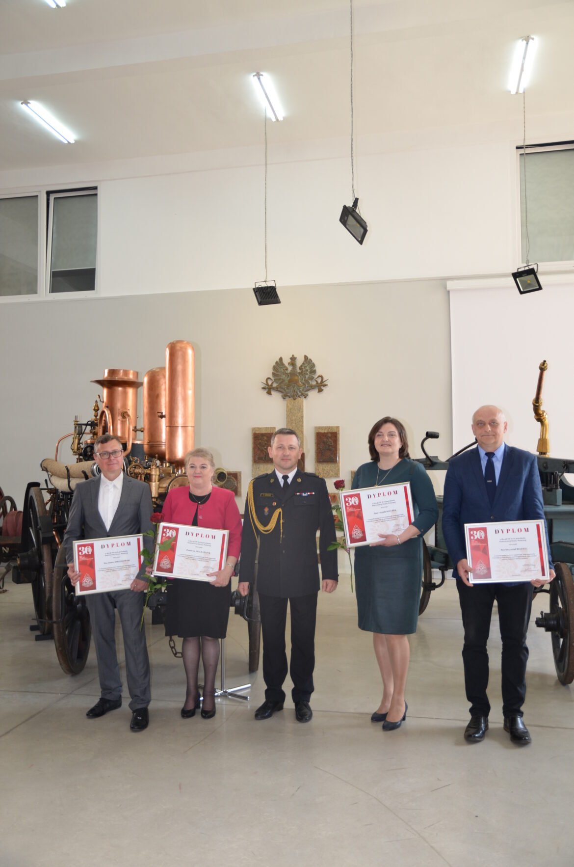 Z okazji 30-lecia powołania Państwowej Straży Pożarnej Dyplomem ustanowionym przez Komendanta Głównego PSP generała brygadiera Andrzeja Bartkowiaka zostali odznaczeni pracownicy Centralnego Muzeum Pożarnictwa, którzy posiadają 30-letni staż pracy w strukturach PSP. Dyplomy wręczył Dyrektor CMP młodszy brygadier Rafał Jureczko. Gratulujemy wyróżnionym pracownikom i życzymy dalszej owocnej pracy.