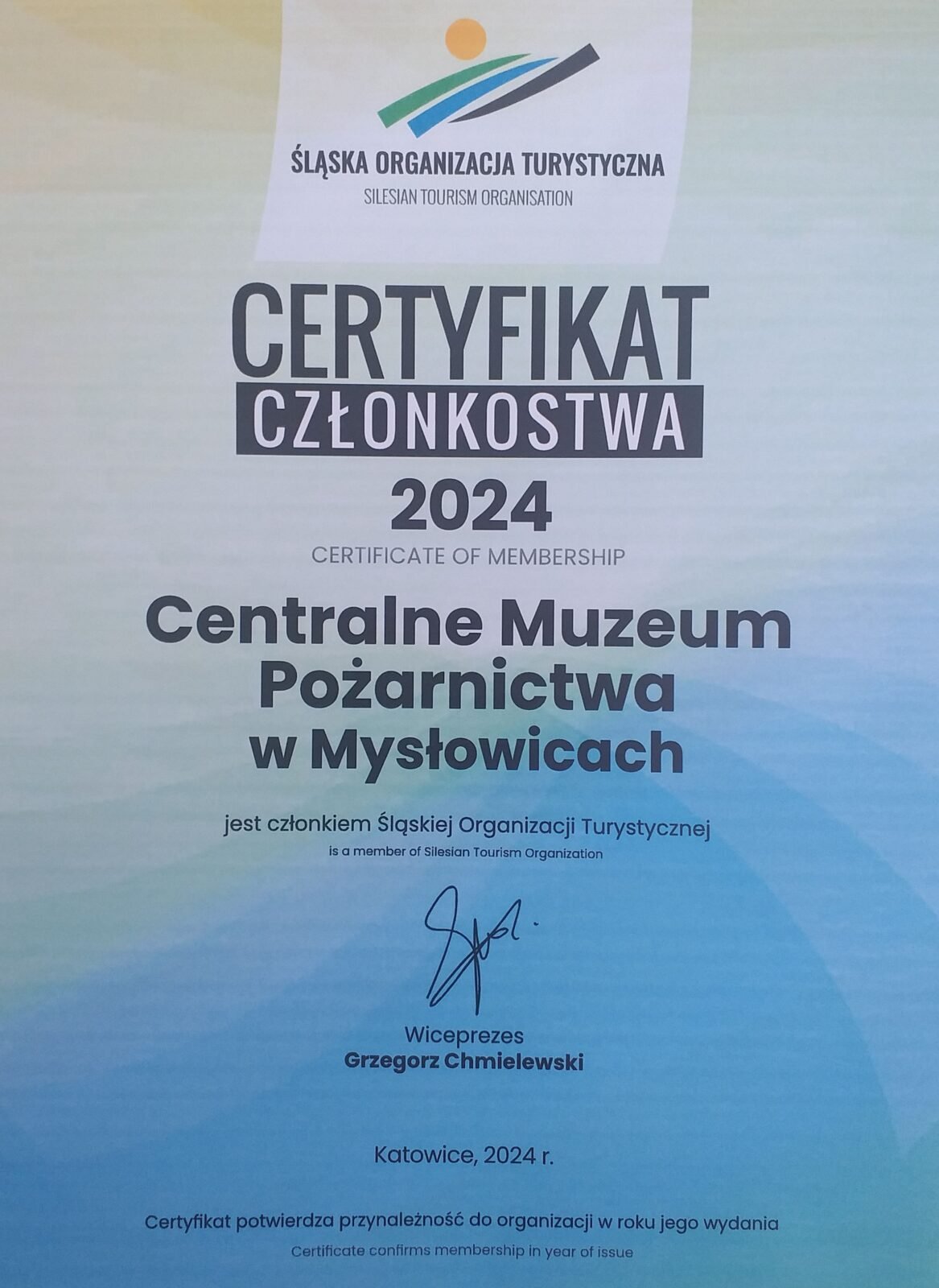 Certyfikat członkostwa CMP w ŚOT na 2024 r.