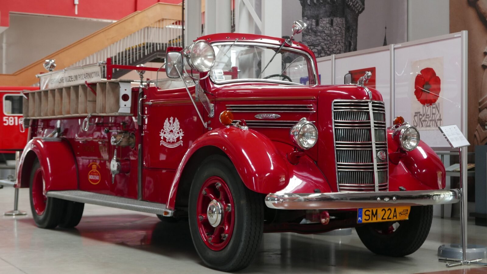 Samochód Mack z kolekcji CMP wyprodukowano w 1947 r. w Nowym Yorku. To model 45S, produkowany w latach 1938-1950. Na etapie projektowania konstruktorzy zakładali, że będzie to pojazd dla straży pożarnych w średnich miastach, docelowo przeznaczony dla Ochotniczych Straży Pożarnych w USA, operujących również poza granicami swojego miasta.