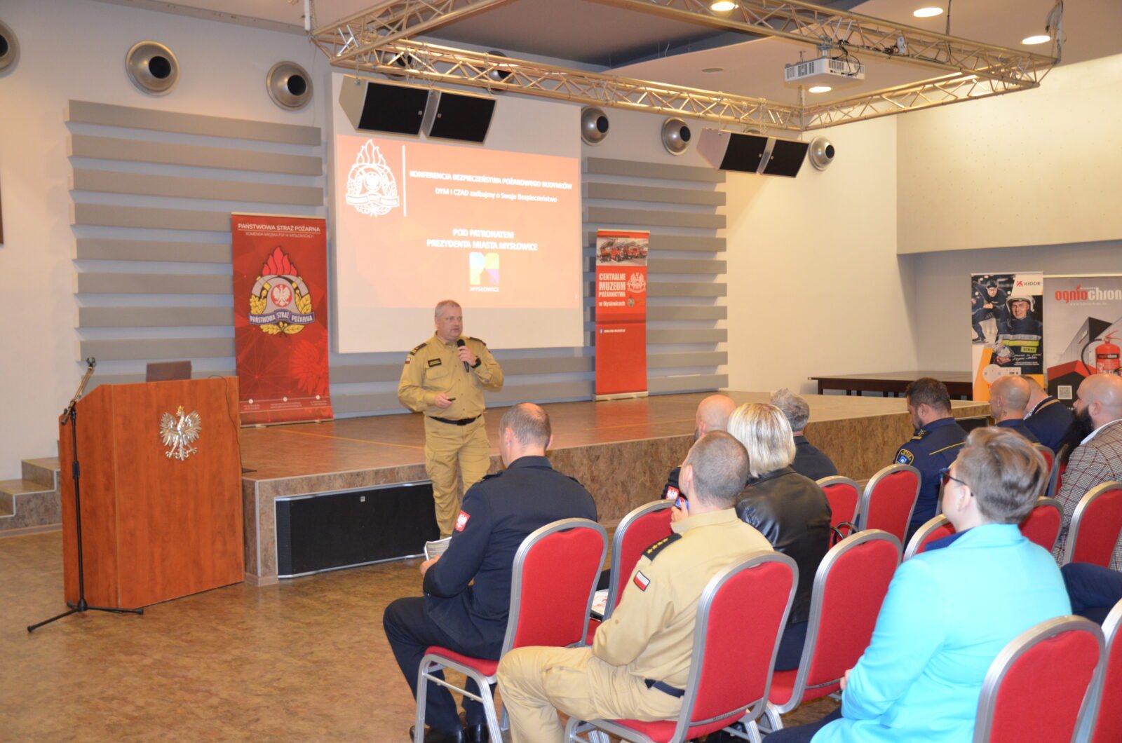 Pośród prelegentów byli również mł. bryg. Wojciech Chojnowski i st. kpt. Krzysztof Niedziela – obaj z Komendy Miejskiej Państwowej Straży Pożarnej w Mysłowicach. Referaty wygłosili także przedstawiciele podmiotów zajmujących się produkcją i wdrażaniem systemów bezpieczeństwa dla odbiorców zbiorowych i indywidualnych.
