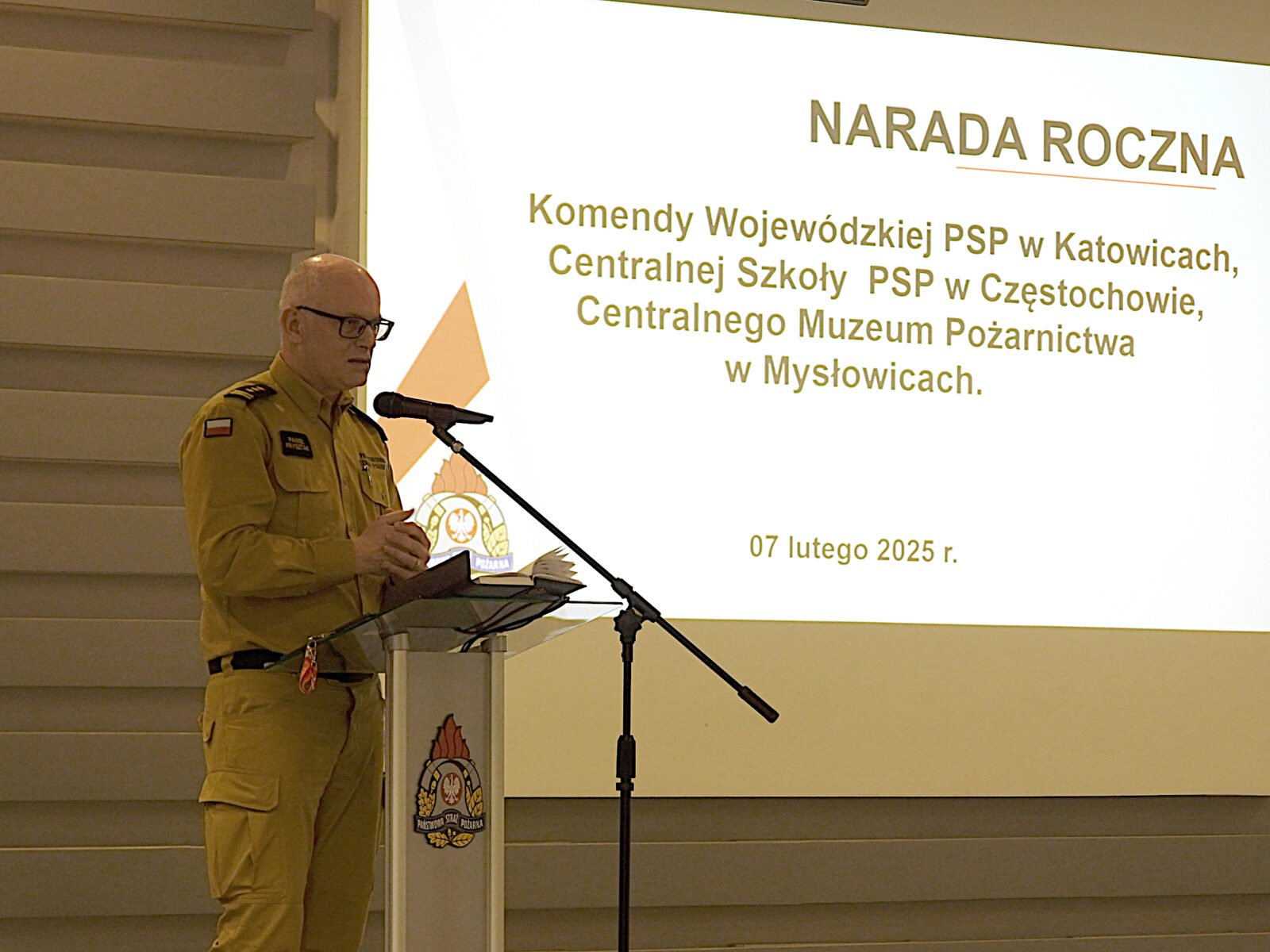 Jako pierwszy głos zabrał Śląski Komendant Wojewódzki PSP – nadbryg. Wojciech Kruczek, który po krótkim wstępie i przywitaniu gości, przedstawił sprawozdanie z funkcjonowania Krajowego Systemu Ratowniczo – Gaśniczego na terenie województwa, podsumował działalność komend powiatowych i miejskich PSP oraz przedstawił zamierzenia na 2025 rok. W swoim wystąpieniu po krótce omówił najtrudniejsze wyzwania, z którymi musieli się mierzyć śląscy strażacy w ubiegłym roku, między innymi pożary nielegalnych wysypisk odpadów oraz działania powodziowe na południu województwa. Zaprezentował również realizację zakupów i inwestycji poczynionych przez jednostki organizacyjne PSP woj. śląskiego. W końcowej części wystąpienia położył nacisk na wdrażanie nowo uchwalonej ustawy o ochronie ludności i obronie cywilnej i wyzwaniach, które stawia ona przed formacją.