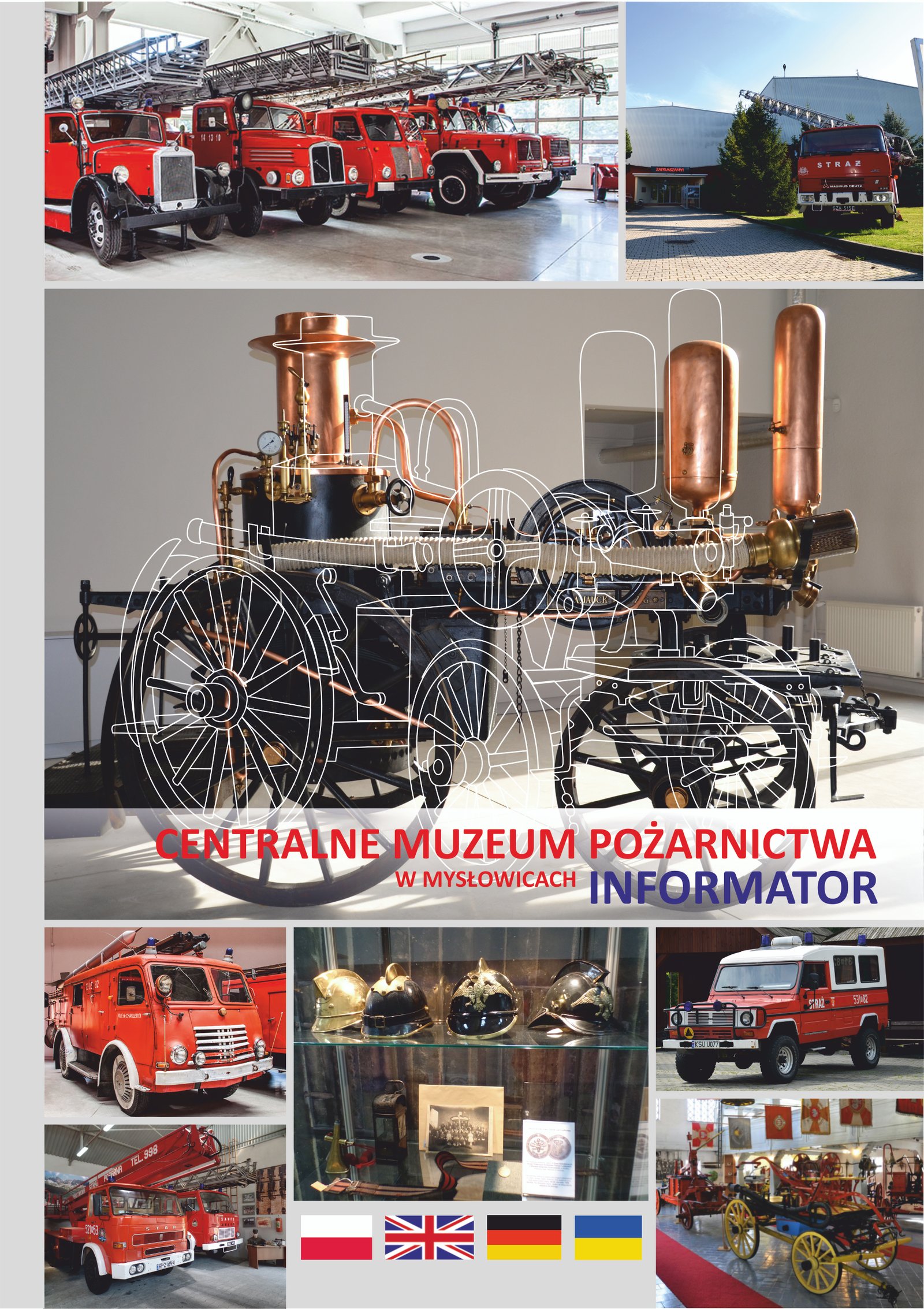 Informator prezentuje najciekawsze eksponaty pogrupowane tematycznie. Opisy wykonano w czterech językach: polskim, angielskim, niemieckim i ukraińskim. Wydawnictwo stanowi skrótowe źródło informacji o zbiorach Centralnego Muzeum Pożarnictwa w Mysłowicach. Informator wydano na papierze kredowym, wszystkie ilustracje są kolorowe. Jeden z rozdziałów poświęcono zbiorom Wielkopolskiego Muzeum Pożarnictwa w Rakoniewicach Oddziału Zamiejscowego CMP w Mysłowicach.