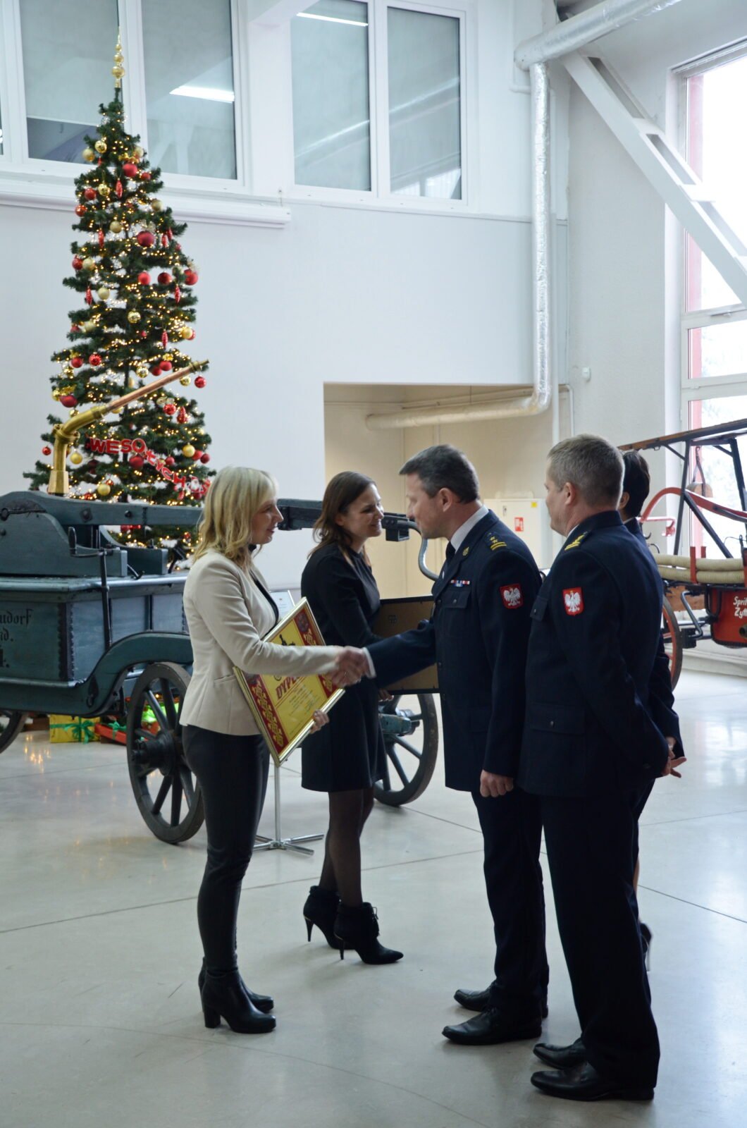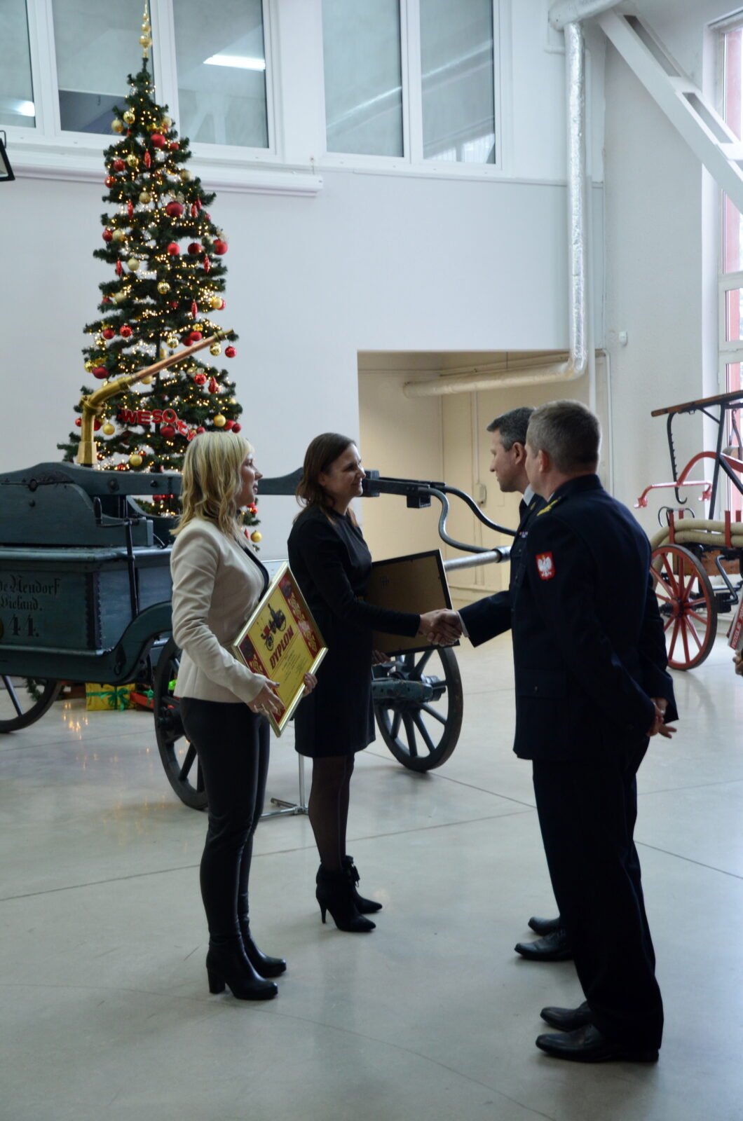 Po tych wystąpieniach wręczono dwóm pracownikom Centralnego Muzeum Pożarnictwa –