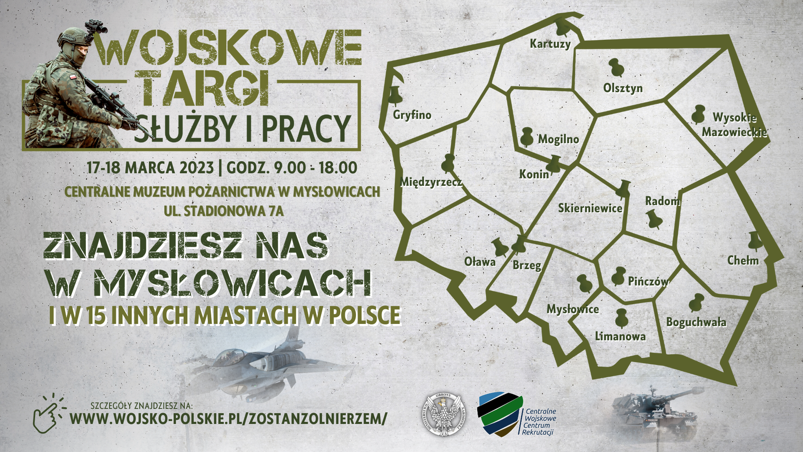 Targi odbędą się w 15 miastach w Polsce, w dniach 17-18 marca 2023 r. (piątek – sobota) w godz. 9.00-18.00. Zainteresują wszystkich tych, którzy szukają ciekawej pracy, chcą podjąć nowe wyzwania w swoim życiu i zobaczyć na żywo profesjonalizm żołnierzy Wojska Polskiego.
